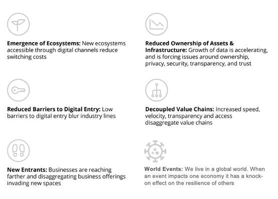 Greater resilience. Disruptive challengers, world events such as Covid-19 and new technologies will continue to shake up customer expectations and processes. A digital business builds resilience by replacing rigid structures and inflexible processes with a workplace culture and infrastructure that can respond and adapt to new demands.
